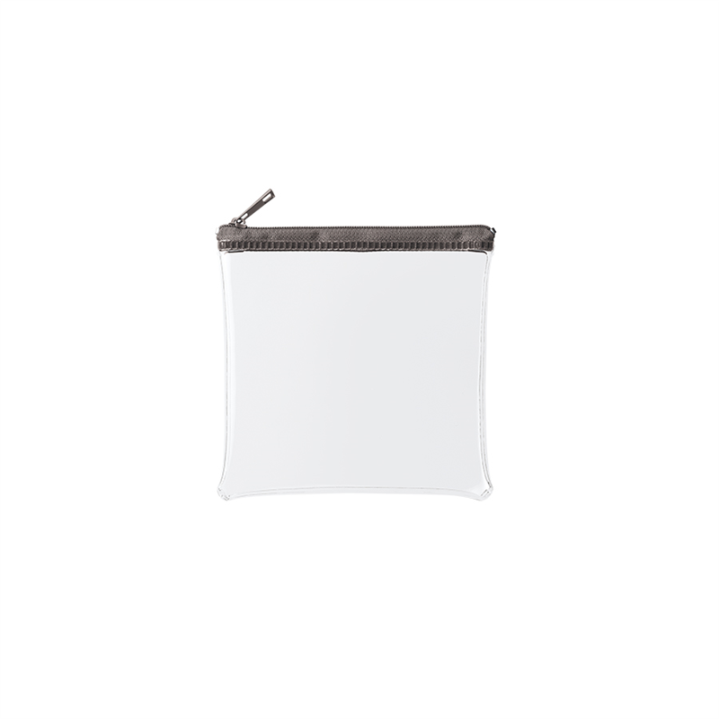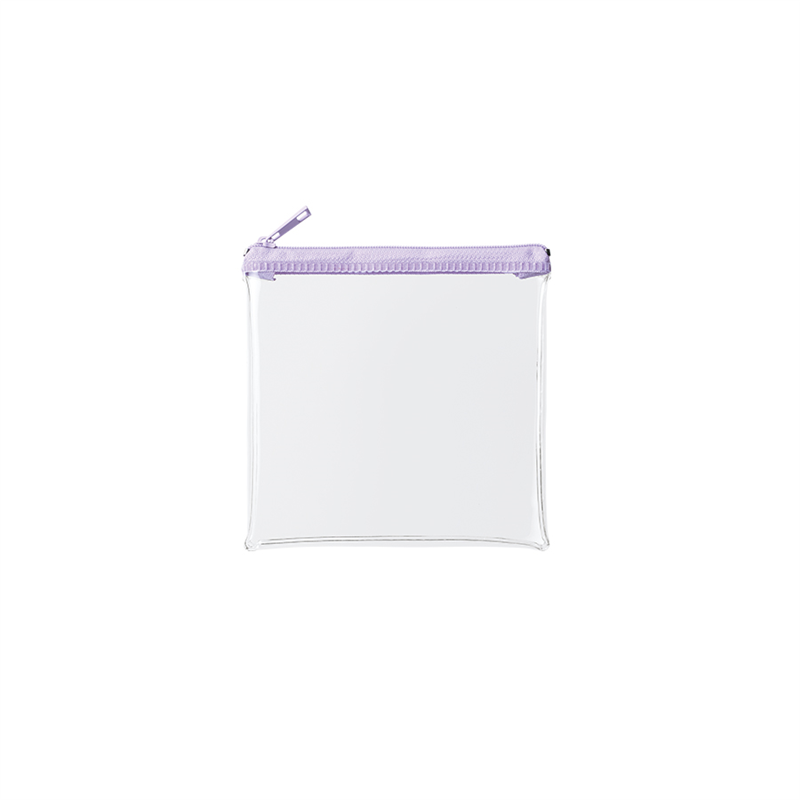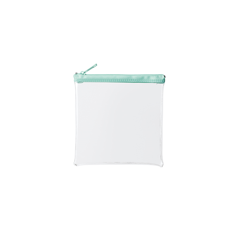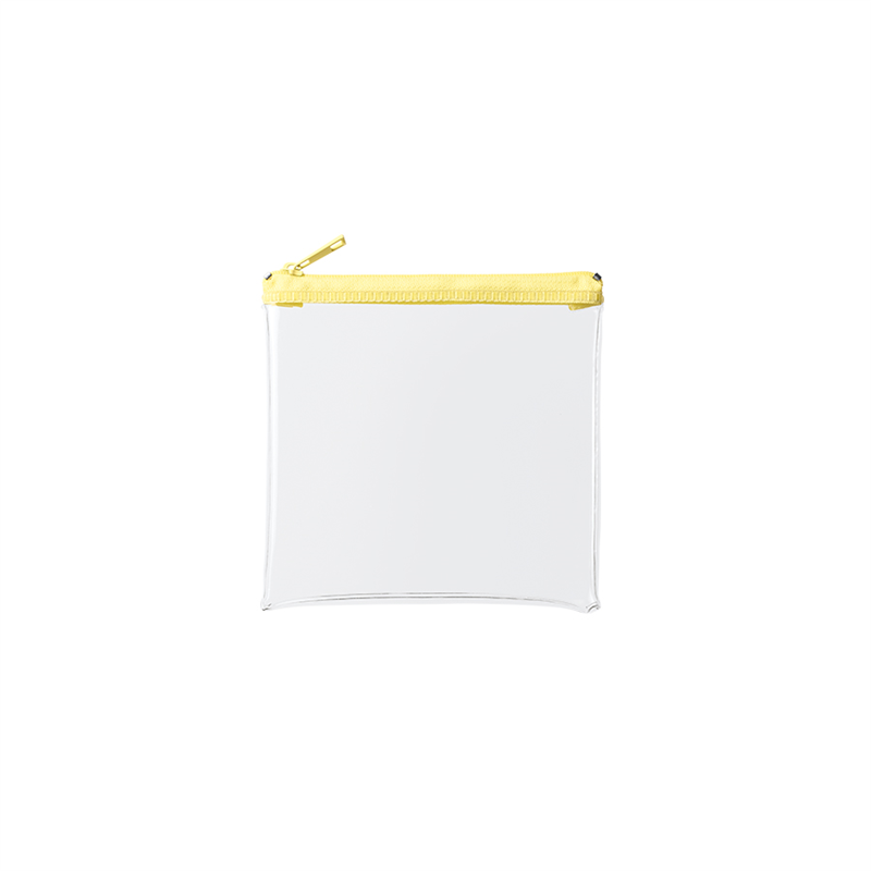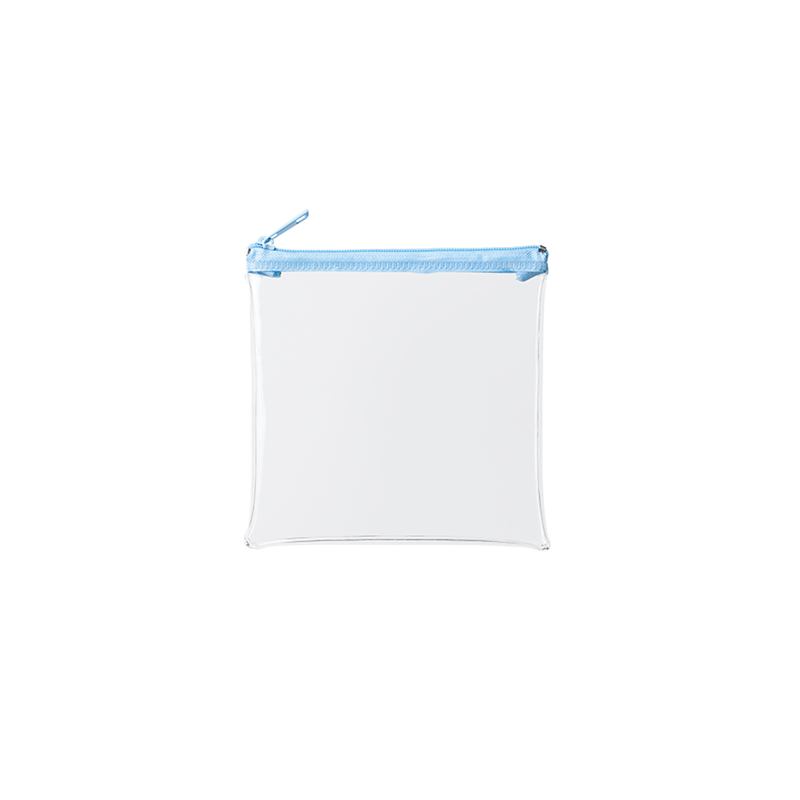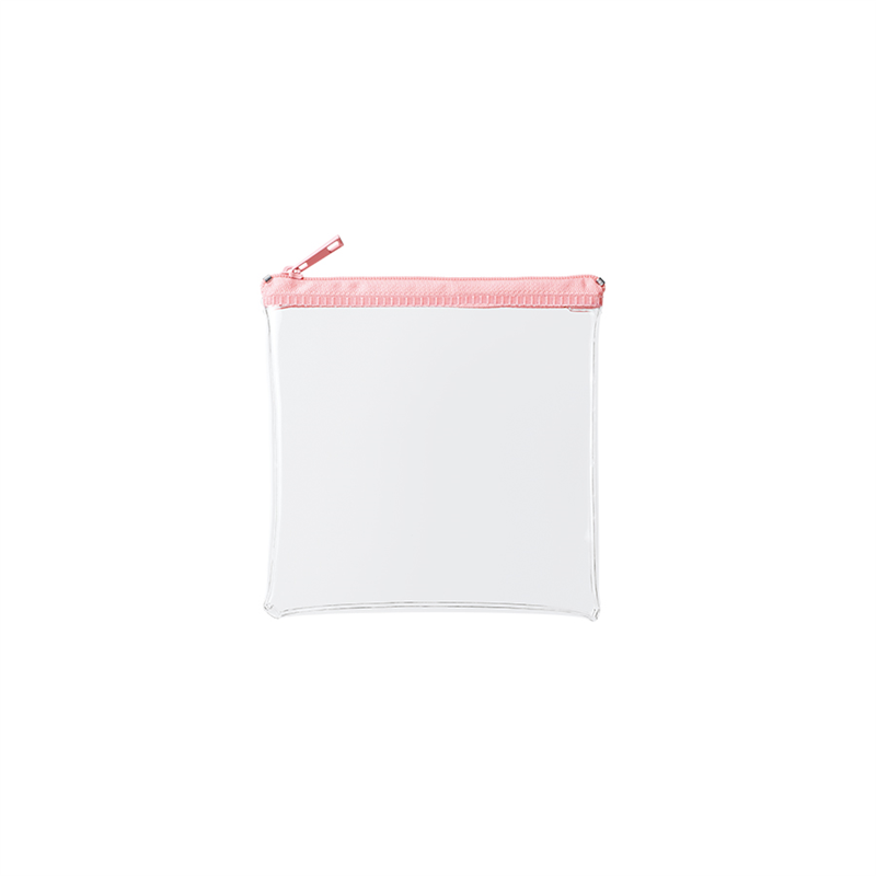 カラーファスナーがポイントの正方形クリアポーチです。ファスナー部分のみカラー展開なので、シンプルな印象でどんなデザインにもマッチするアイテムです。Mサイズはノートやペンなどステーショナリーを入れたセット販売や、水に強いPVC素材のためトラベル用アメニティグッズ入れとしてもおすすめです。単色印刷またはフルカラー印刷に対応しており、キャラクターやスポーツチームロゴ、ブランドロゴなどを名入れし、テーマカラーにファスナーカラーもあわせればオリジナリティの高いアイテムを作成いただけます。