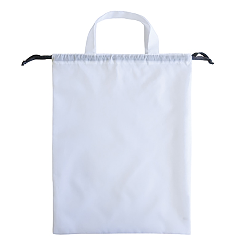 大容量で持ち手付きの巾着袋です。両紐タイプの巾着式なので開閉が簡単。中身が飛び出す心配もありません。靴や旅行時の衣類の仕分けから、小さくたたんで普段のお買い物のエコバッグとしてもご活用いただけます。※ストッパーはついていません。※縫製品のため、表記のサイズや重量が実際の製品とは多少異なる場合があります。●重さ:約35g/枚●持ち手:幅約2.5×長さ約30cm●入数:10枚
