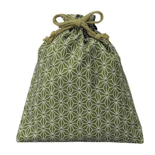 ㈱三和 コットン 和風柄巾着 麻の葉柄 大 VN2126-1G グリーン 50枚/袋(ご注文単位1袋)【直送品】