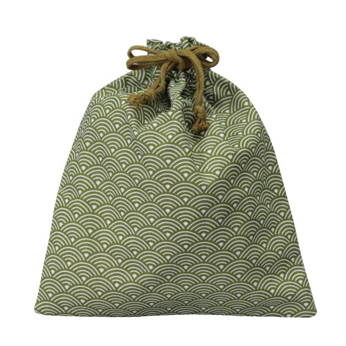 ㈱三和 コットン 和風柄巾着 青海波柄 小 VN1726-2G グリーン 50枚/袋(ご注文単位1袋)【直送品】