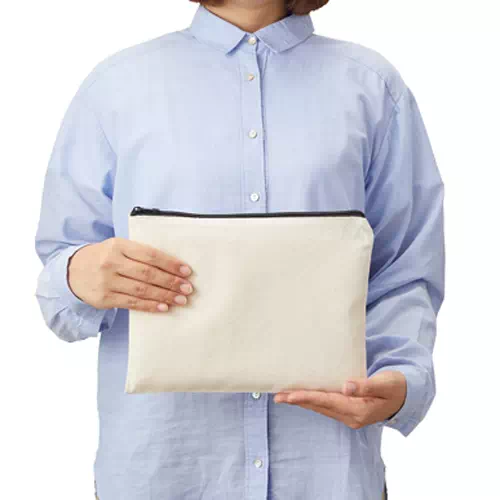 ●ユニセックスなキャンバス生地ポーチ。ステーショナリーやコスメ入れに。