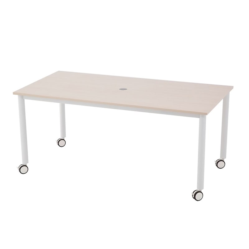 ●会議室にはもちろん、オフィスのフロアにもマッチするシンプルでおしゃれな多目的テーブルです。●天板カラーはホワイト、ナチュラル、ダークブラウン、ライトブラウンの4色、脚はホワイト、ブラックの2色から選べます。●幅サイズは120、150、180cmの3種類。●アジャスターとキャスター付きをご用意していますので、ご使用目的に合わせてお選びください。●1500wまで使用可能な2口コンセントをオプションでご用意。●天板はフラッシュ構造という軽く丈夫な特殊技術を採用。●三角補強で揺れ防止!丈夫な磨き鋼板と鉄パイプを構造材に採用●※北海道・沖縄・離島は別途配送費が必要です。●サイズ:幅1500×奥行800×高さ720mm●質量:23.5kg●材質/本体:スチール(粉体塗装仕上げ)、天板:繊維板(フラッシュ構造) + メラミン樹脂含浸紙、エッジ部:PVC樹脂、キャスター:ナイロン樹脂●キャスターストッパ付き(2個)●耐荷重:天板/約50kg(均等荷重)●こちらの商品は事業者様向け商品です。●こちらの商品は取寄せ商品となり納期が長期間かかる可能性がございます。また、ご発注後のキャンセルは対応いたしかねますので予めご了承ください。