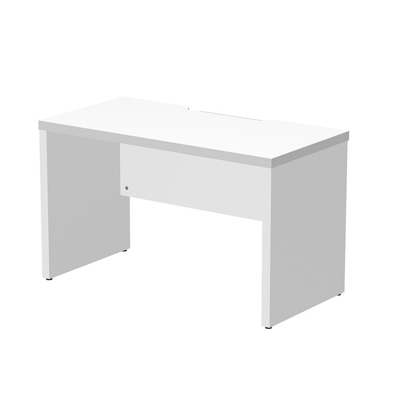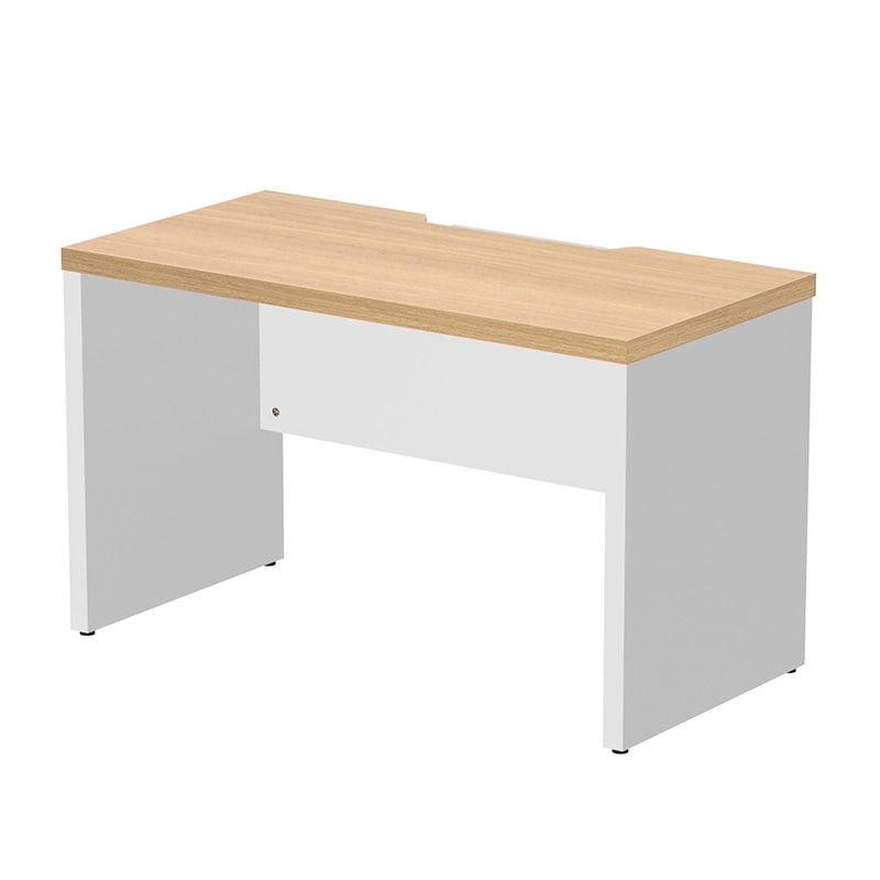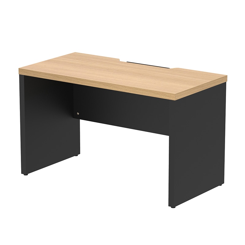 Yupita Series 立体的に空間を有効活用できるユピタシリーズのRF木製デスク。環境に配慮した低ホルム木材を使用。天板はエンドを斜めにカットしたシャープなデザインです。天板奥にOAタップやアダプタなどを収納するスペースを装備、切り欠き付きカバーは前後どちらの向きでもご使用いただけます。詳細寸法:天板厚み25/下肢空間W1360xD375xH695mm 耐荷重:天板約40Kg●お客様組立て商品です(2人以上で約25分)●重量:33.2kg●
