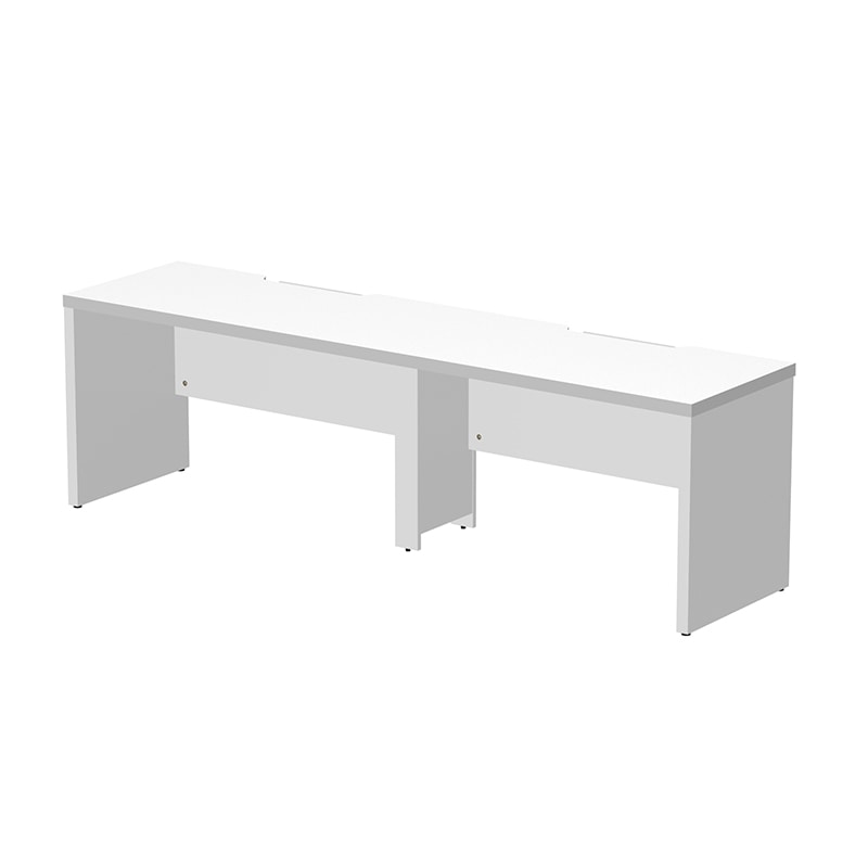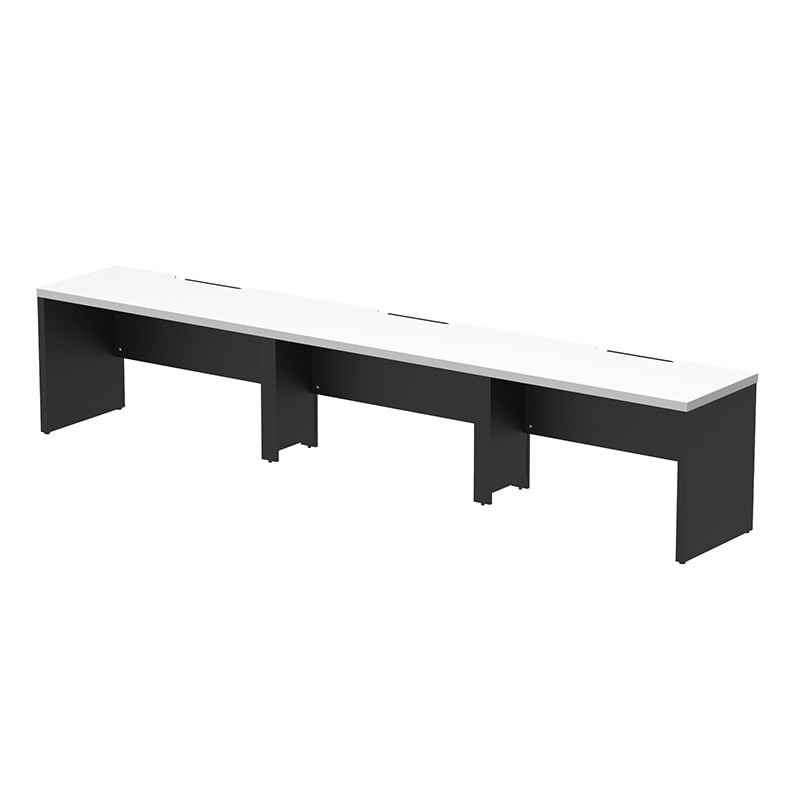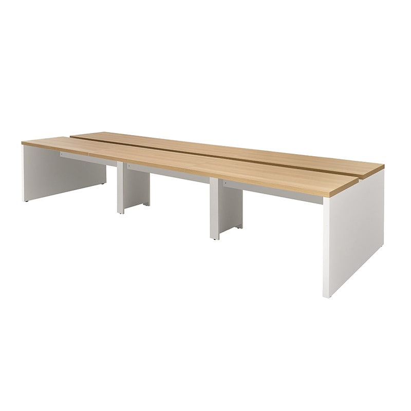 SOLIDO series 40mm厚の天板・脚部で構成された高級感のあるフリーアドレス用デスク。電源タップが収納出来る配線受けや、足元の目隠しが可能な幕板付き。中間脚にはコードを通せて足元すっきり。天板にはクランプ式のモニターアームも取り付け可能。1200mm単位で天板の増減が可能な為、人員やオフィス面積の変化にも柔軟に対応可能です。また固定席用デスクとしても問題無くご使用いただけます。●お客様組立て商品です(2人以上で約40分)●重量:150kg●幕板・中間脚部:低圧メラミン樹脂化粧木質ボード・PVCエッジ/アジャスター:PP/フレーム・配線受け:スチール(粉体塗装)