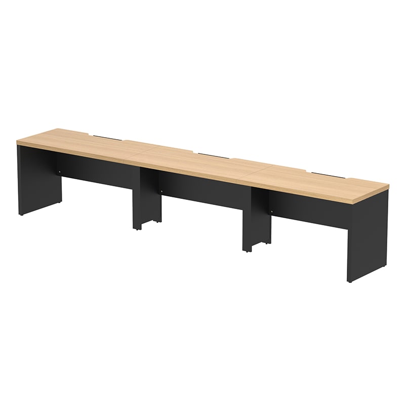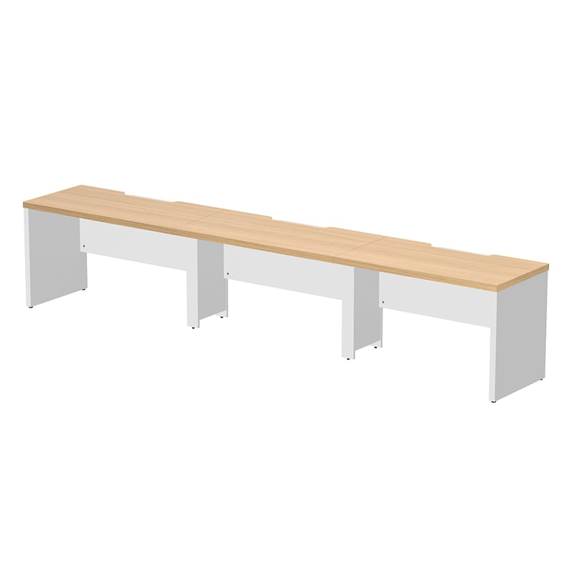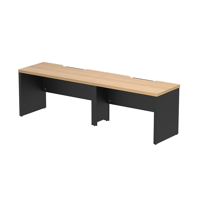 SOLIDO series 40mm厚の天板・脚部で構成された高級感のあるフリーアドレス用デスク。電源タップが収納出来る配線受けや、足元の目隠しが可能な幕板付き。中間脚にはコードを通せて足元すっきり。天板にはクランプ式のモニターアームも取り付け可能。1200mm単位で天板の増減が可能な為、人員やオフィス面積の変化にも柔軟に対応可能です。また固定席用デスクとしても問題無くご使用いただけます。●お客様組立て商品です(2人以上で約30分)●重量:103kg●幕板・中間脚部:低圧メラミン樹脂化粧木質ボード・PVCエッジ/アジャスター:PP/フレーム・配線受け:スチール(粉体塗装)