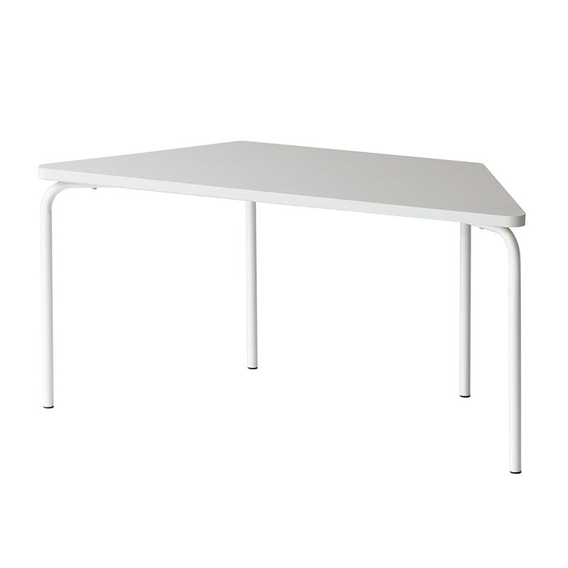 様々な組み合わせができる台形型テーブルです。1つのテーブルで2~3人で使用でき、 様々な学びや遊びの空間を作ることができます。グループ学習や個人学習などスタイルに合わせた柔軟なレイアウトが可能です。対面式での個別学習やグループワークとしてもご使用いただけます。最大6名ほどが座れます。使わない時は積み重ねて収納でき、お部屋のスペースを活用できるのが特長です。最大3台まで重ね合わせることが可能です。天板や脚部の角は丸みをもたせています。お子様のいる空間でも安心してご使用いいただけます。天板にはメラミン化粧板を使用。水や傷に強く耐久性もあり日々のお手入れも簡単です。●組立品●重量:約9.25kg●耐荷重:天板10kg●組立時間:約20分