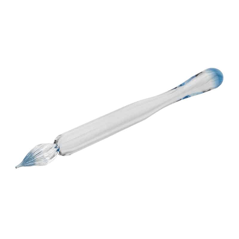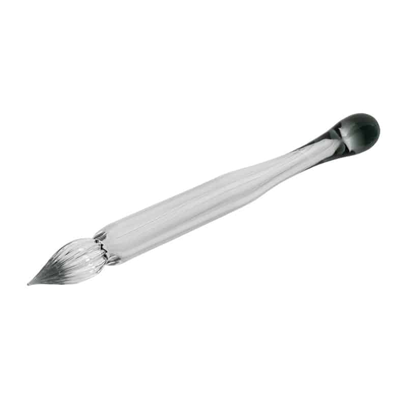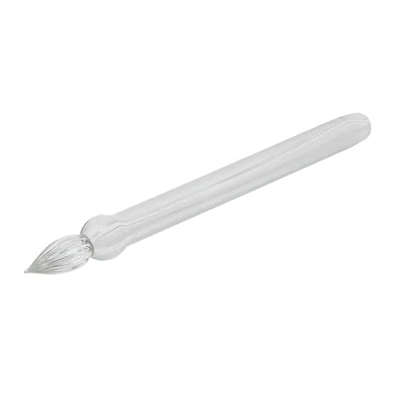 ガラスが体温に近付くことで一体感が生まれ、感じるままに手を動かすことができる新感覚のガラスペンです。文字を照らすガラスペン書くことによって自分自身を見つめ直すことがコンセプト。太くて短い軸と乳白色のペン先にこだわり、大切にしたくなるフォルムに仕上げました。コンパクトなサイズですが、手の大きな男性でも問題なく書けます。軸にはサンドブラスト加工でグラデーションを施しました。※手づくりの為、寸法や書き味に個体差が出る場合があります。
