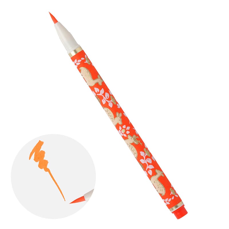 あかしや 越前塗 蒔絵筆ペン 鹿 朱 漆塗 UK18E-07 1本(ご注文単位1本)【直送品】