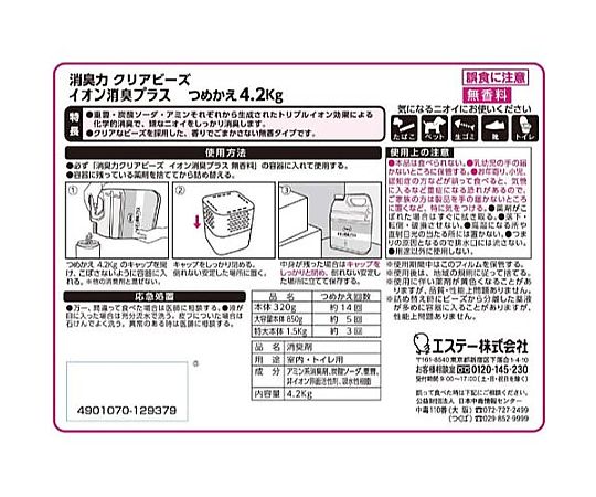 エステー 消臭力クリアビーズイオン消臭プラス 詰替4.2kg129379 1個 (ご注文単位1個) 【直送品】