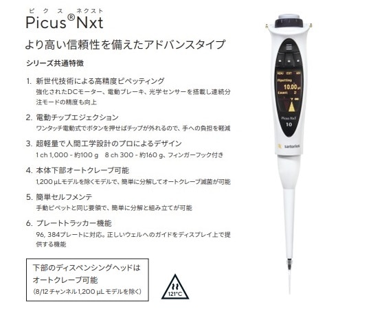 ザルトリウス Picus Nxt 電動ピペット 12ch 10~300μLLH-745461 1箱 (ご注文単位1箱) 【直送品】