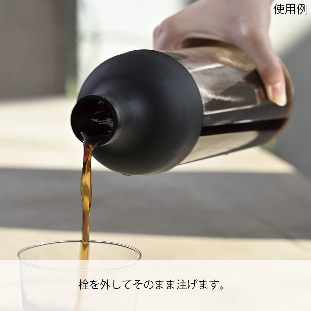 ●ワインボトル型の水出しコーヒーボトルです。●コーヒー粉と水だけで水出しコーヒーが作れます。●ストレーナーにコーヒー粉を入れ、フタをして注口にセットしたら少量ずつ水を注ぎます。水を注ぎ終えたら、冷蔵庫で8時間程抽出してできあがりです。●コーヒーを抽出する際、ボトルをゆっくり左右に振って抽出促進する事ができます。●材質:本体/耐熱ガラス、注口・栓/シリコーンゴム、ストレーナーフレーム/ポリプロピレン、メッシュ/ポリエステル●サイズ:87×84×300mm●口径:71mm●容量:650mL(5杯専用)●こちらの商品は事業者様向け商品です。