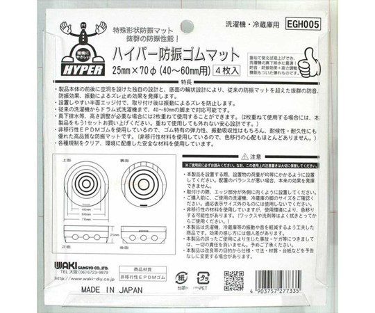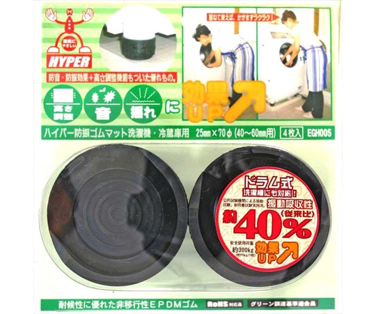和気産業 ハイパー防振ゴムマット 洗濯機・冷蔵庫用 ブラック 高さ25×70φmm 4枚入EGH-005 1袋 (ご注文単位1袋) 【直送品】