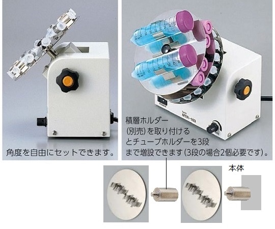 ●遺伝子研究でのDNA抽出、及び各種マイクロチューブ用振盪機としてご使用いただけます。 ●チューブホルダー(別売)の角度を水平から垂直まで任意にセットできます。 ●積層ホルダー(別売)を取り付けるとチューブホルダーを3段まで増設できます(3段の場合2個必要です)。 ●傾斜角度を自由に変えられます。●回転数:1~15rpm●ホルダー傾斜角度:0~90°(水平~垂直)●モーター:DCモーター●サイズ:W180×D115×H155mm(凸部含む)●重量:約1.7kg(チューブホルダー除く)●電源:AC100V 50/60Hz 0.2A●電源コード長:約2m(3Pプラグ・変換アダプター付き)●品名:本体●※チューブホルダー・積層ホルダーは付属していません。●こちらの商品は事業者様向け商品です。