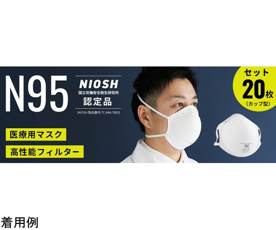 スリーアールソリューション カップ型 NIOSH N95マスク 1箱 (20枚入) FT-N058 1箱 (ご注文単位1箱) 【直送品】