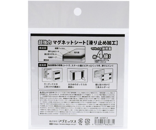 マグエックス 超強力マグネットシート 滑り止め加工 粘着付 カットタイプ 100×50mm 2片付AGWF-2 1片 (ご注文単位1片) 【直送品】