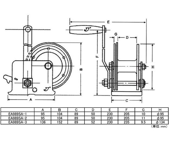 エスコ 270kg ハンドウインチEA989SA-1 1個 (ご注文単位1個) 【直送品】