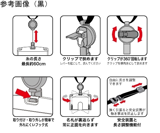 ソニック リールストラップカードホルダー ICサイズ縦黒 EX-4106-D 1個(ご注文単位1個)【直送品】