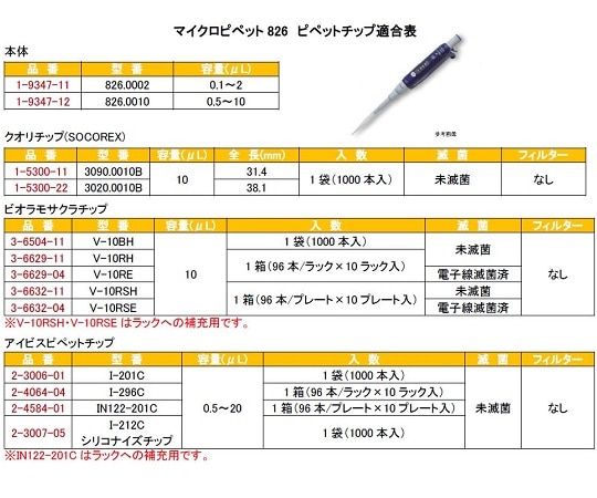 ソコレックス マイクロピペット (アキュラ) 0.5~10μL826.0010 1本 (ご注文単位1本) 【直送品】