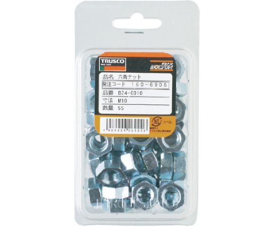 アズワン 六角ナット1種 ユニクロ サイズM10×1.5 55個入B24-0010 1パック (ご注文単位1パック) 【直送品】
