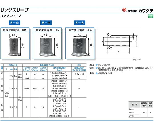 KAWAGUCHI リングスリーブ E-小 100個入 1箱 (ご注文単位1箱) 【直送品】