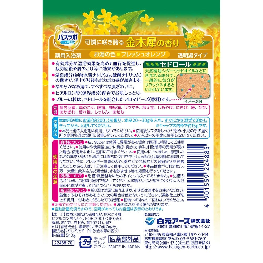 白元アース HERSバスラボ ボトル (入浴剤) 金木犀の香り 540g22488-7 1本 (ご注文単位1本) 【直送品】