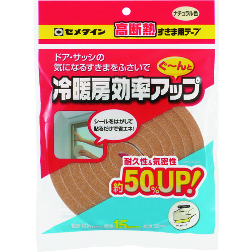 トラスコ中山 セメダイン 高断熱すきま用テープ 10mm×15mm×2m ナチュラル TP-524(ご注文単位1巻)【直送品】