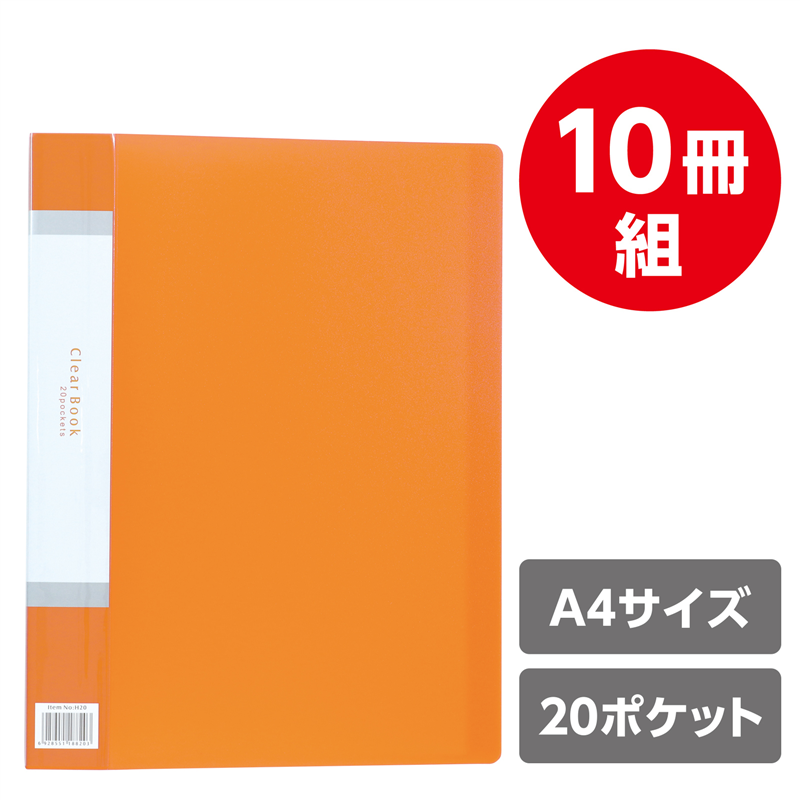 アーテック クリアブックB 厚 A4 20ポケット オレンジ10冊パック 1個(ご注文単位1個)【直送品】
