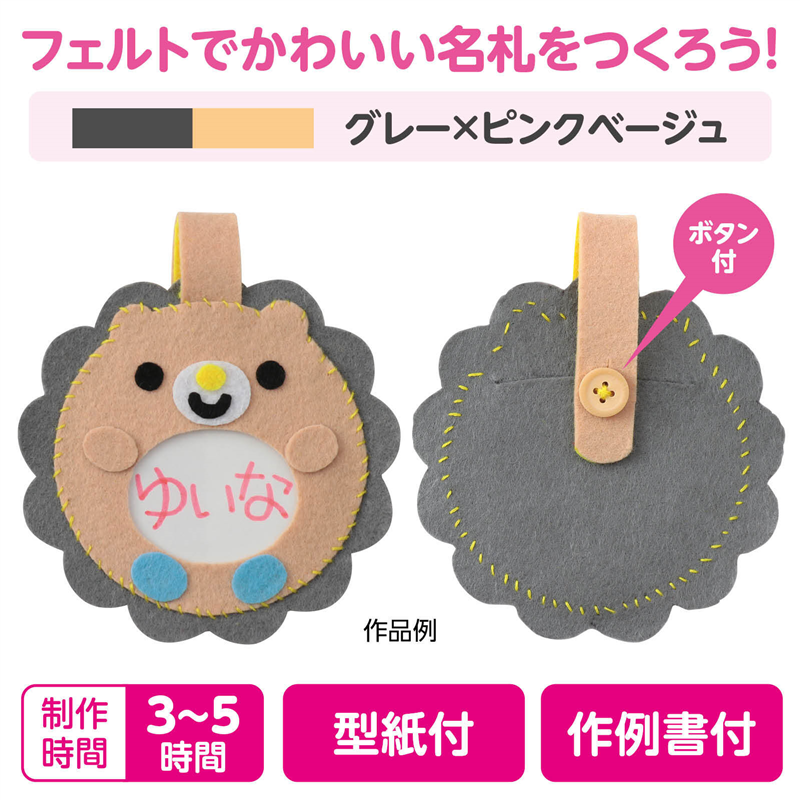 アーテック フェルトでつくるネームワッペン グレー×ピンクベージュ 1個(ご注文単位1個)【直送品】