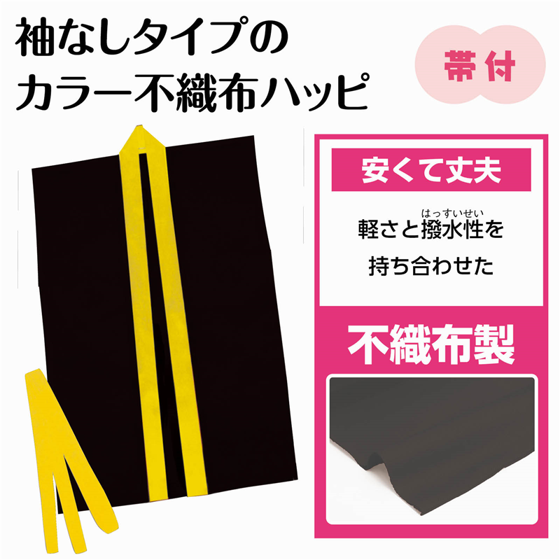 アーテック カラー不織布ハッピ袖無 黒(黄襟)J 1個(ご注文単位1個)【直送品】