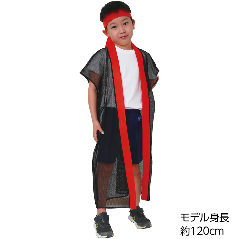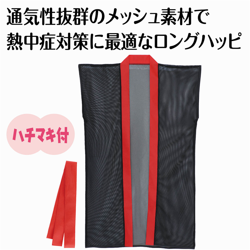 アーテック メッシュロングハッピ(ハチマキ付) 黒(赤襟) J 1個(ご注文単位1個)【直送品】