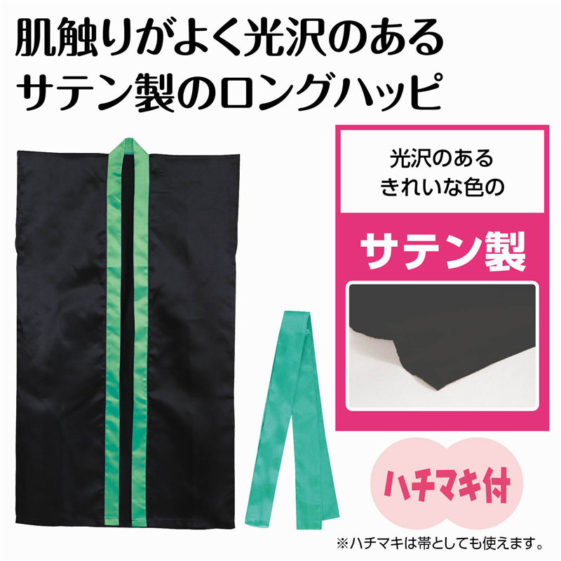 アーテック サテンロングハッピ(ハチマキ付) 黒(襟緑) J 1個(ご注文単位1個)【直送品】