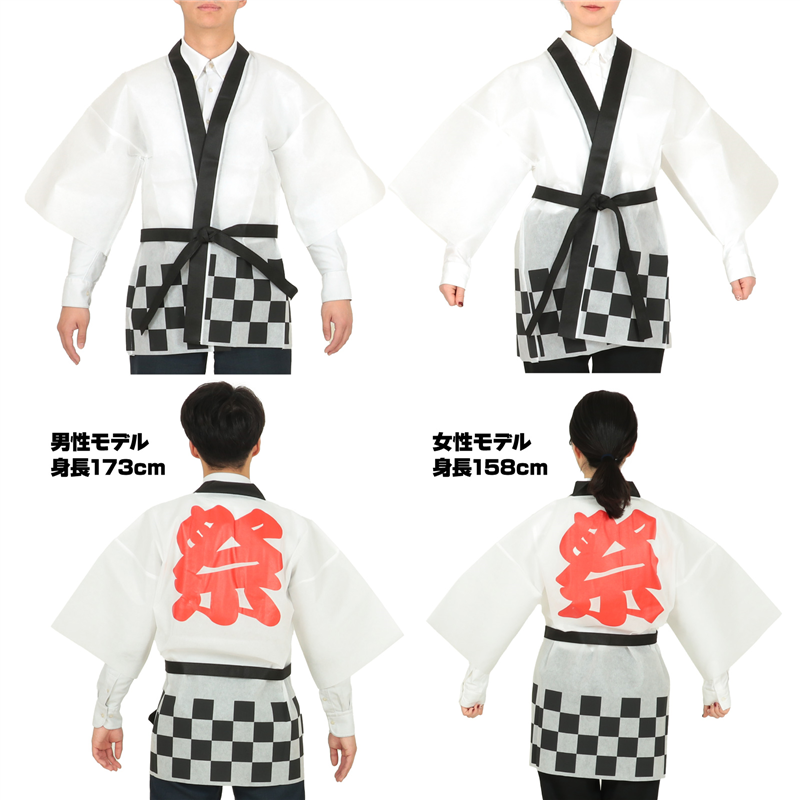 アーテック カラー不織布ハッピ 祭 市松柄 白 L 1個(ご注文単位1個)【直送品】