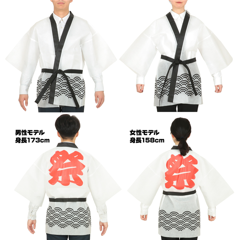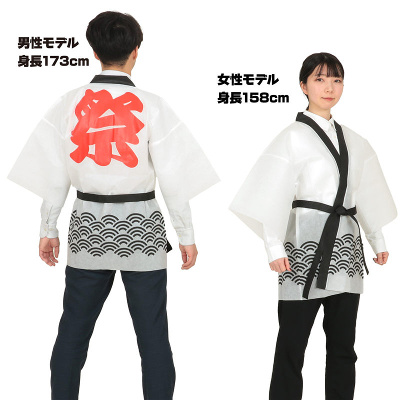 アーテック カラー不織布ハッピ 祭 青海波柄 白 L 1個(ご注文単位1個)【直送品】
