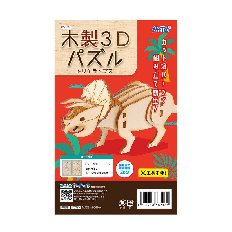アーテック 木製3Dパズル トリケラトプス 1個(ご注文単位1個)【直送品】