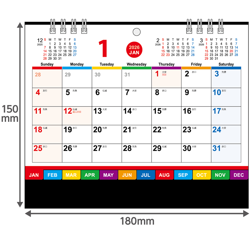 アーテック Wリング2WAYカレンダーカラフル 1個(ご注文単位1個)【直送品】