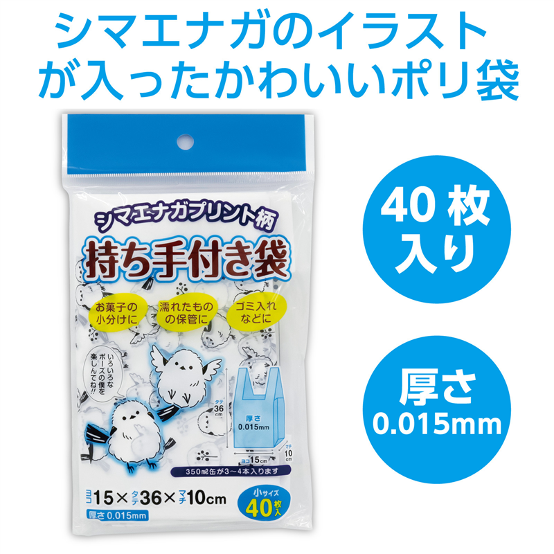 アーテック シマエナガ柄持ち手付きポリ袋 小 40P 1個(ご注文単位1個)【直送品】