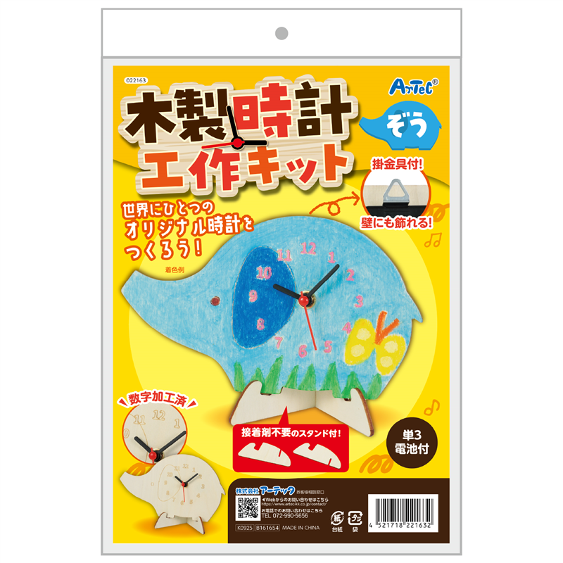 アーテック 木製時計工作キット ぞう 1個(ご注文単位1個)【直送品】