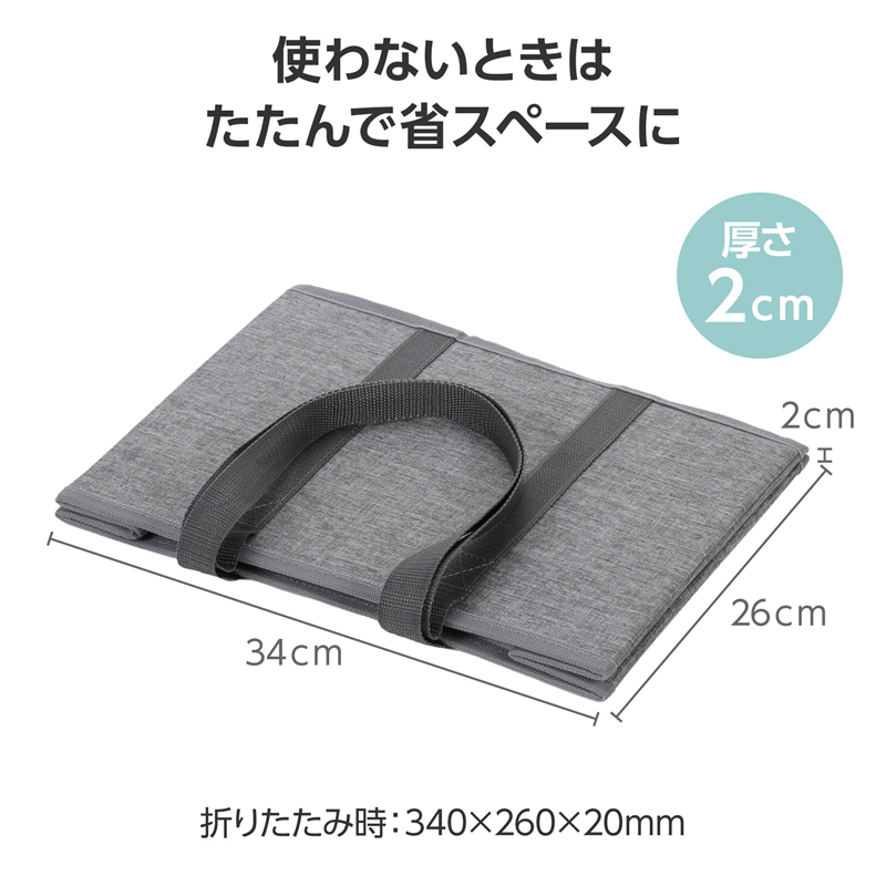 折りたたみ時:約340×260×20mm、展開時:約340×260×125mm