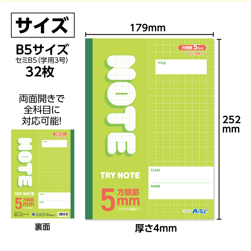アーテック 5mm方眼ノート B5 グリーン32枚 10冊(ご注文単位1セット)【直送品】