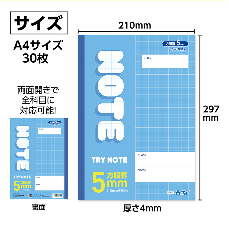 アーテック 5mm方眼ノート A4 ブルー 30枚 10冊(ご注文単位1セット)【直送品】