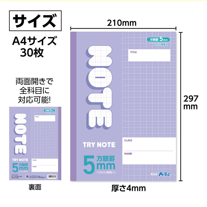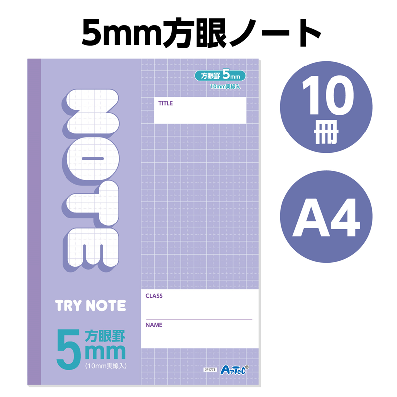 アーテック 5mm方眼ノート A4 パープル30枚 10冊(ご注文単位1セット)【直送品】