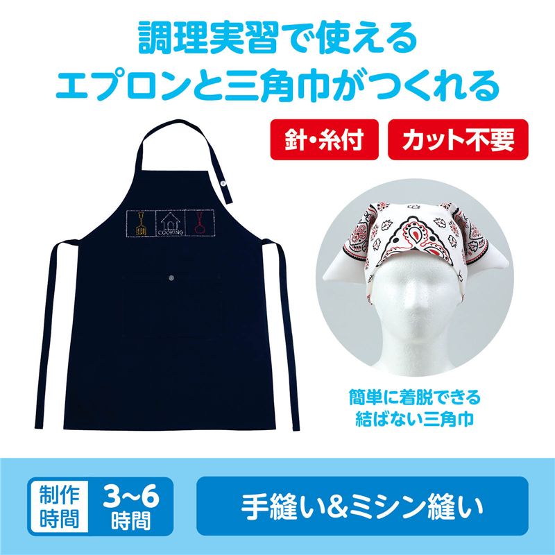 アーテック 基礎縫いエプロン 紺 バンダナ白 (ご注文単位1セット)【直送品】