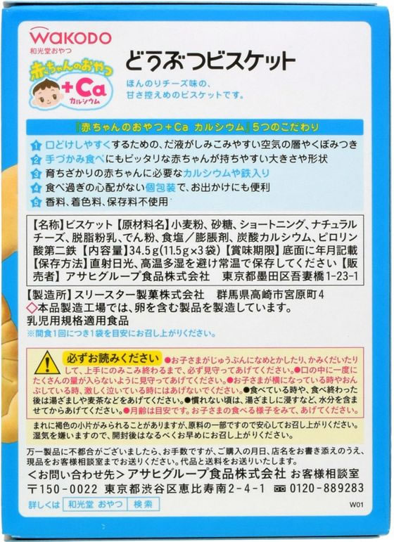 和光堂 赤ちゃんのおやつ+Ca どうぶつビスケット 3袋 1個※軽(ご注文単位1個)【直送品】