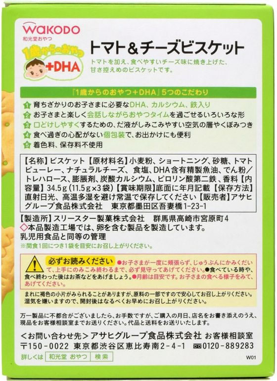 和光堂 1歳からのおやつ+DHA トマト&チーズビスケット 3袋 1個※軽(ご注文単位1個)【直送品】