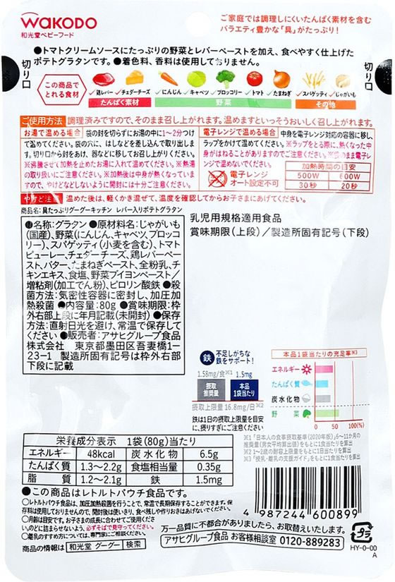 和光堂 具たっぷり レバー入りポテトグラタン 80g 1個※軽(ご注文単位1個)【直送品】
