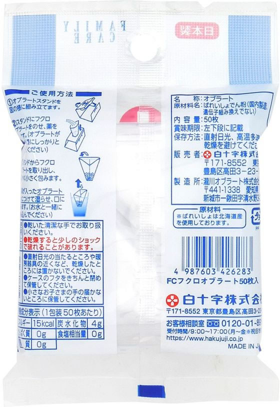 白十字 FC フクロオブラート 50枚入 1パック※軽(ご注文単位1パック)【直送品】
