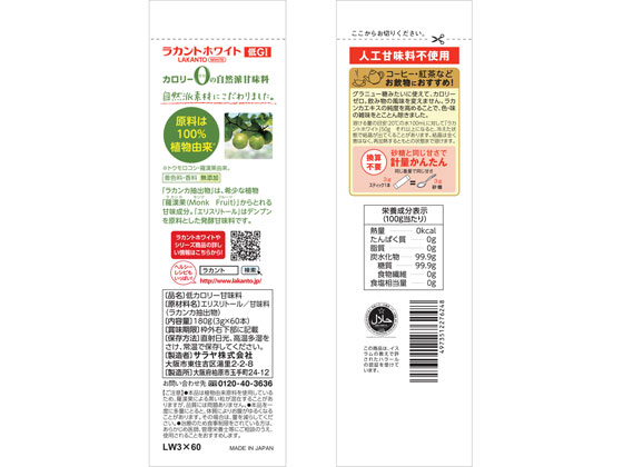 サラヤ ラカントホワイト 3g×60本 1袋※軽(ご注文単位1袋)【直送品】