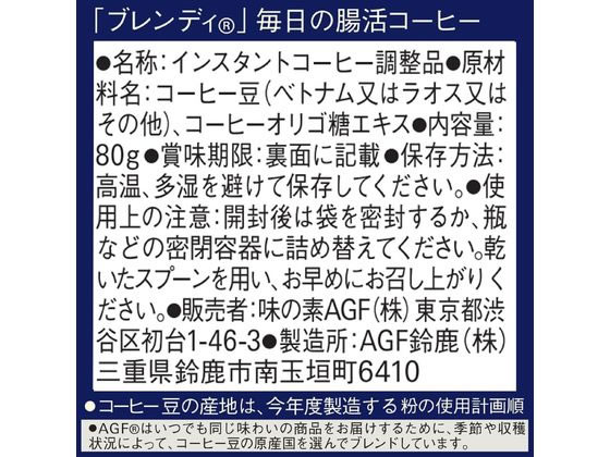 AGF ブレンディ 毎日の腸活コーヒー 袋 80g 1袋※軽(ご注文単位1袋)【直送品】