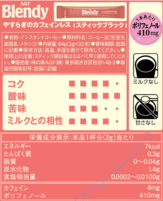 AGF ブレンディパーソナルインスタントコーヒーやすらぎのカフェインレススティック 1箱※軽(ご注文単位1箱)【直送品】