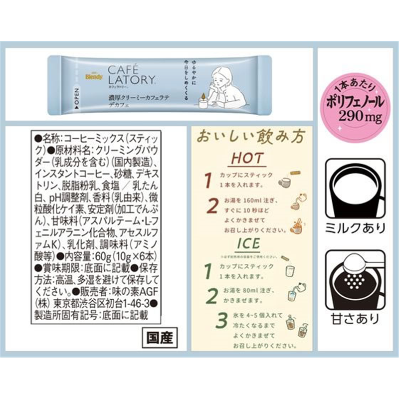 AGFブレンディカフェラトリースティック 濃厚クリーミーカフェラテデカフェ 6本 1箱※軽(ご注文単位1箱)【直送品】